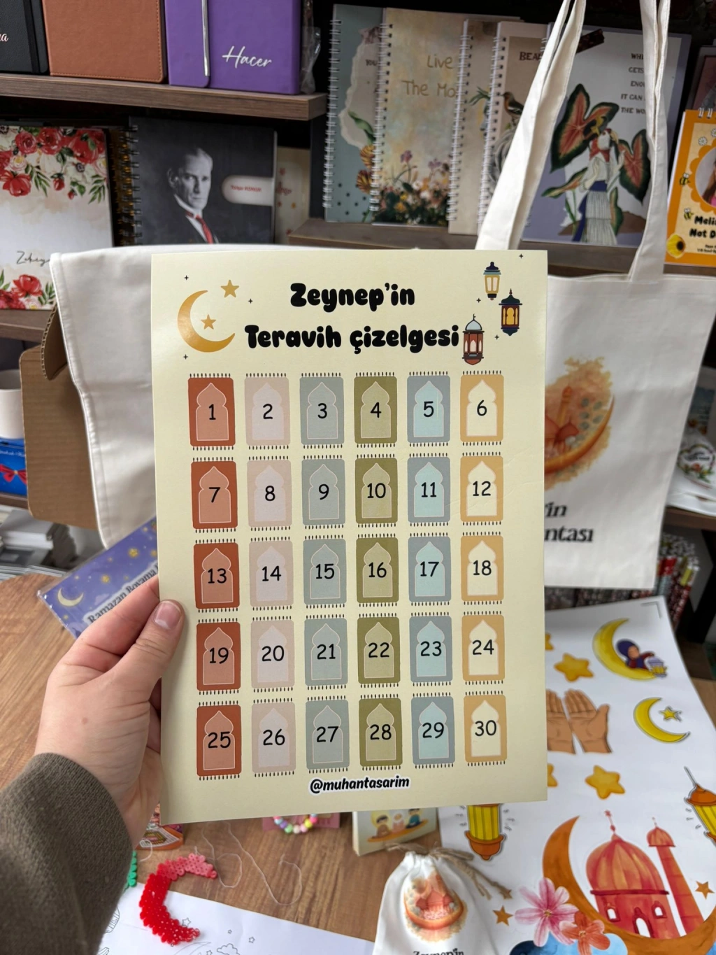 Çocuklar için Ramazan Teravih Çizelgesi A4 ebatındadır.